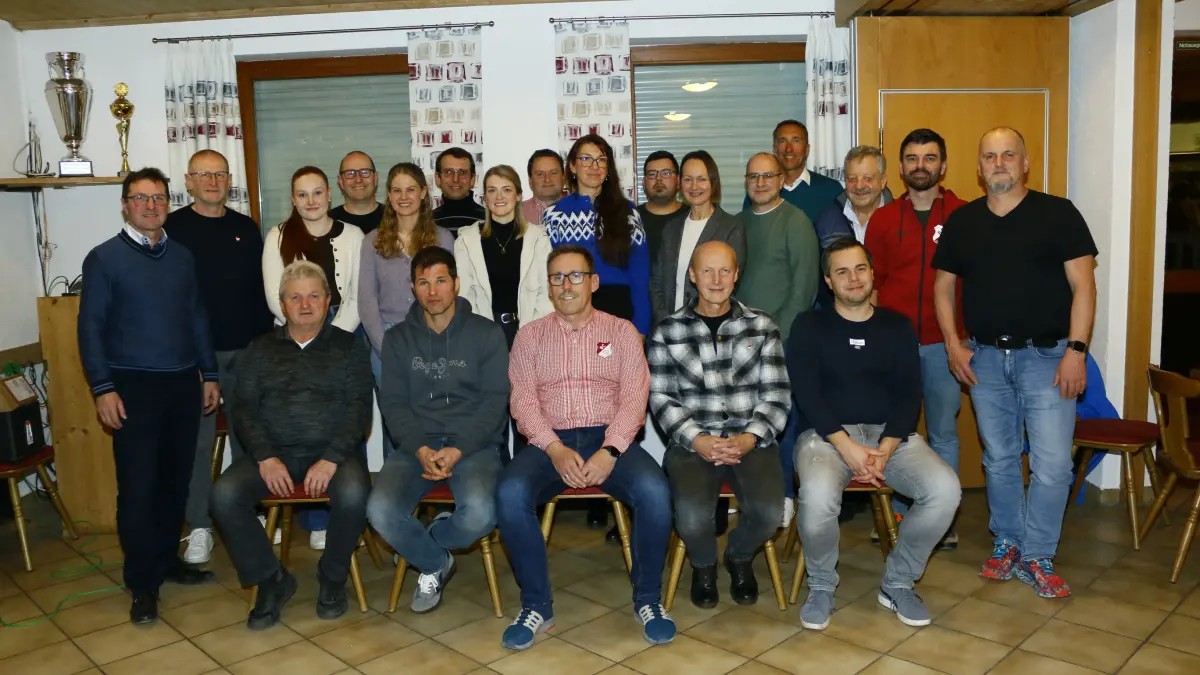 stehend von links: Andreas Greppmeir (Ehrenamtsbeauftragter), Josef Greppmeir (Beisitzer), Eva Pfaffenzeller (Leiterin Damenfußball), Thomas Greppmeir (2. Jugendleiter Fußball), Christina Beyer (Beisitzerin), Martin Schlicker (Leiter AH-Fußball), Linda Greppmeir (Beisitzerin), Thomas Huber (Jugendleiter Fußball), Elena Riedlberger (Mitgliederverwaltung), Christian Fottner (Abteilungsleiter Fußball), Ulrike Goldstein (Abteilungsleiterin Fitness und Kindersport), Michael Ziegler (2. Kassier), Florian Andreschewski (Abteilungsleiter Tennis), Hans Pletzer (Abteilungsleiter Stockschützen), Stefan Widmann (3. Jugendleiter Fußball) und Raik Sämisch (Leiter Breitensportgruppe)